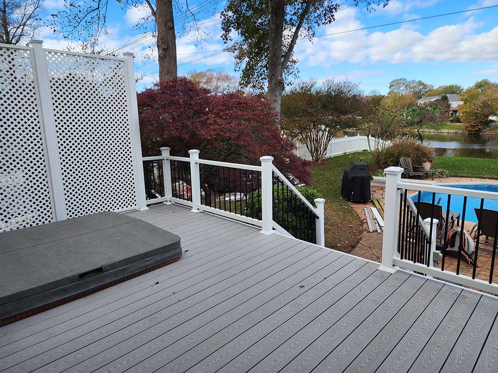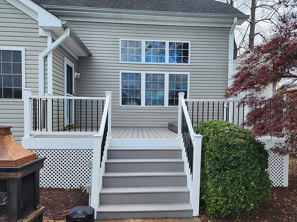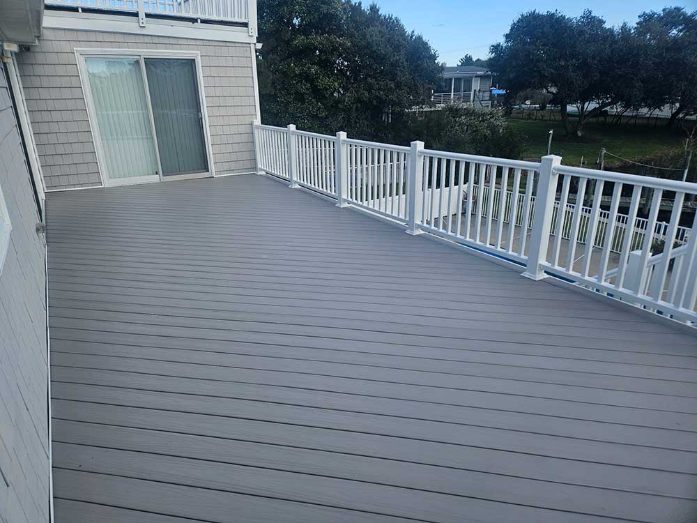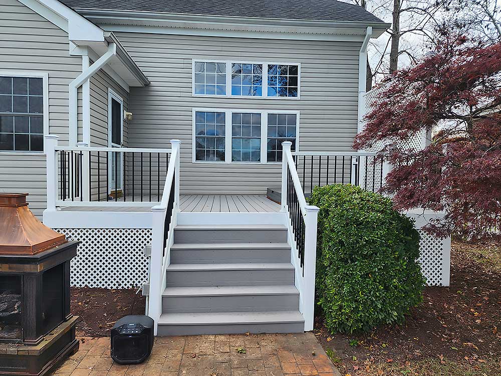 Composite decking is a great choice for homeowners who want a beautiful outdoor space without the upkeep of traditional wood. It holds its color, resists scratching and moisture, and stands up well to Virginia Beach weather. Composite materials do not warp or splinter, and they stay looking good with simple cleaning instead of yearly staining. With a wide range of colors and textures, you can choose a style that matches your home and fits your outdoor living goals. Our team will help you compare options and find the right product for your budget and design. Below are examples of completed and in progress composite decks that show the care and precision we bring to every build.